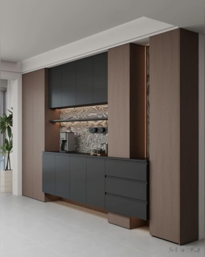 穿插、悬挑式设计搭配胡桃木色,是最优雅的创意流露,它不做作,不虚夸,以它那高端大气的姿态,在餐边柜的行列中尽显奢华。想做的朋友们,赶紧抄作业吧。[微笑][赞][赞][赞][赞]